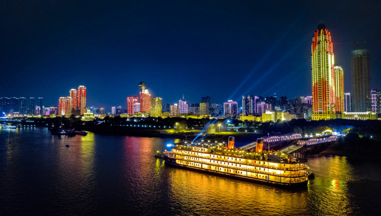 圖為知音號(hào)游船在武漢長江段瑰麗的夜景中暢行 圖片來源:知音號(hào)網(wǎng)站