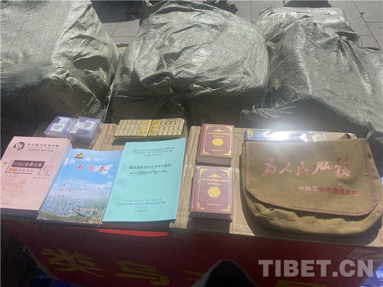 據(jù)了解,“學習包”里包含藏漢字典、教材、練字字帖等學習用具,此次活動共發(fā)放學習包8900余份。里面教具齊全、教材內(nèi)容豐富。(中國西藏網(wǎng) 通訊員/向巴 梁俠 巴姆)
