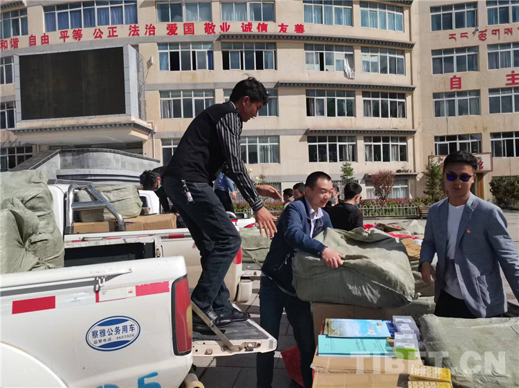 工作人員將“學習包”裝車后運往十一縣(區(qū))