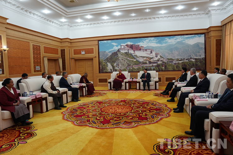 西藏自治區(qū)領(lǐng)導(dǎo)洛桑江村、莊嚴(yán)、陳永奇、嘎瑪澤登、達(dá)娃次仁、甲熱·洛桑丹增、珠康·土登克珠、薩龍·平拉、索朗仁增陪同會見。(中國西藏網(wǎng) 記者/王淑 拉姆)