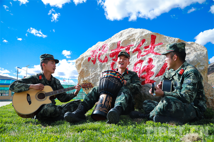 中國西藏網(wǎng)訊 近日,駐守在平均海拔4300米的西藏自治區(qū)昌都市八宿縣邦達鎮(zhèn)的武警第二機動總隊某支隊官兵,充分發(fā)揮興趣愛好特點,開展了樂隊演奏、書香軍營、讀書分享會等特色軍營文化活動,豐富了高原軍營文化生活,進一步鑄牢了青年官兵扎根高原、建設邊疆的堅定理想信念。圖為該支隊官兵正在彈奏自編歌曲《青春高原》 攝影:陸文凱(中國西藏網(wǎng) 通訊員/陸文凱)