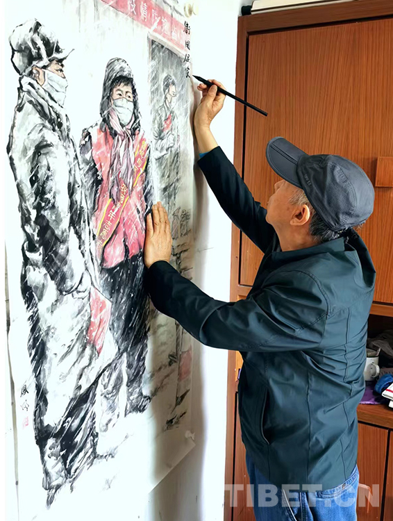 “我愛人看到了咱們館(西藏文化博物館)發(fā)的征稿啟事,然后就把這條信息發(fā)到家庭群里邊。過了不久,我父親說他畫了一張畫,讓我看看畫得怎么樣。我當時還很意外,本來想鼓勵我兒子畫一張,結(jié)果我兒子沒畫,老爺子畫得還很好?!?月21日,張兆林先生將自己的作品《哈達寄深情》捐贈給西藏文化博物館,張兆林之子張安誠將作品送至博物館并收到了捐贈證書。