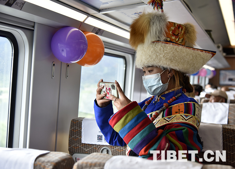 與斯朗旺扎的特別安排不同,游客胡菊萍和章猛飛是恰巧趕上了。一行人于6月23日抵達(dá)拉薩,在游覽了山南市的昌珠寺、雍布拉康等景點(diǎn)后,準(zhǔn)備從山南搭乘火車前往林芝繼續(xù)游玩。胡菊萍告訴記者,2007年,她也曾搭乘火車從西寧到拉薩旅游。“那時(shí)候,翻唐古拉山,身體特別不舒服。今天乘坐復(fù)興號(hào),感覺(jué)特別好。過(guò)隧道時(shí),一點(diǎn)都沒(méi)有耳鳴的反應(yīng),手機(jī)也有信號(hào)。”胡菊萍打算多拍一點(diǎn)車窗外的景色,留存回憶的同時(shí)也要分享給家里人。