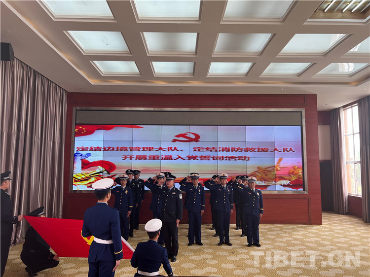 圖為定結(jié)邊境管理大隊(duì)、定結(jié)消防大隊(duì)開展重溫入黨誓詞活動(dòng)