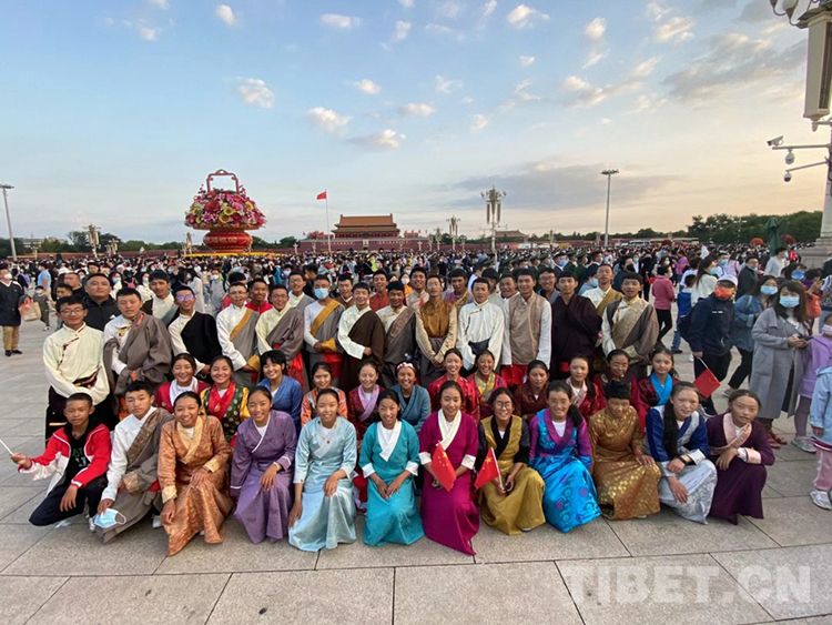圖為2021年10月1日,拉薩市北京中學(xué)首屆“北京班”進京游學(xué),參觀天安門廣場升旗儀式