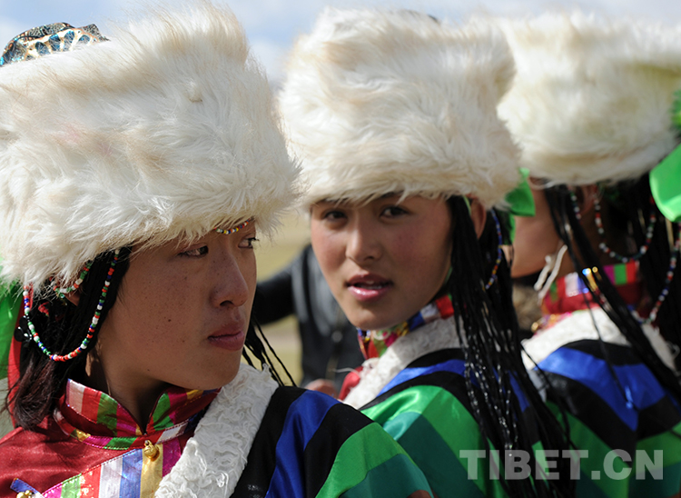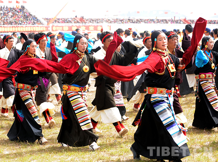這是在藏北首府那曲鎮(zhèn)舉辦的草原賽馬盛會(huì)上,如今沒(méi)有了“高原紅”的藏族婦女在跳大型“鍋莊舞”(唐召明2013年8月10日攝)