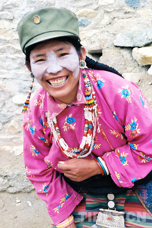 這是藏北尼瑪縣文部鄉(xiāng)過(guò)去使用牦牛奶來(lái)保護(hù)皮膚的藏族婦女(唐召明2001年攝)