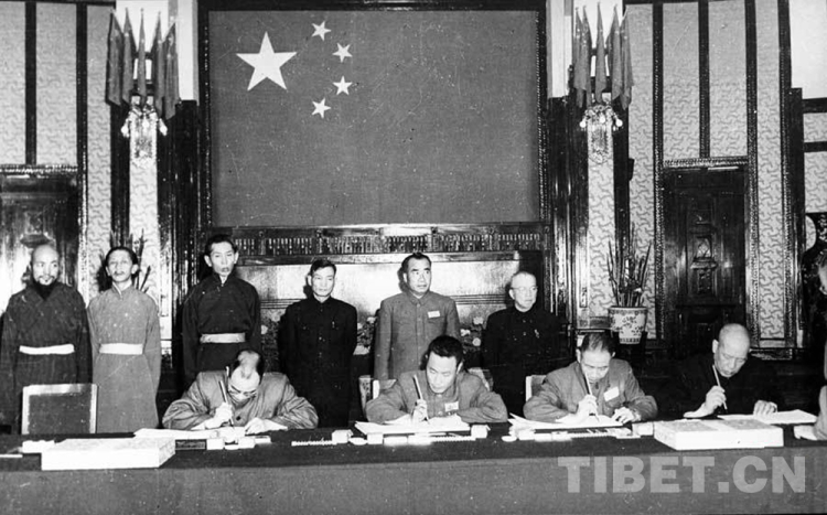 圖為《中央人民政府和西藏地方政府關(guān)于和平解放西藏辦法的協(xié)議》簽訂現(xiàn)場(chǎng)
