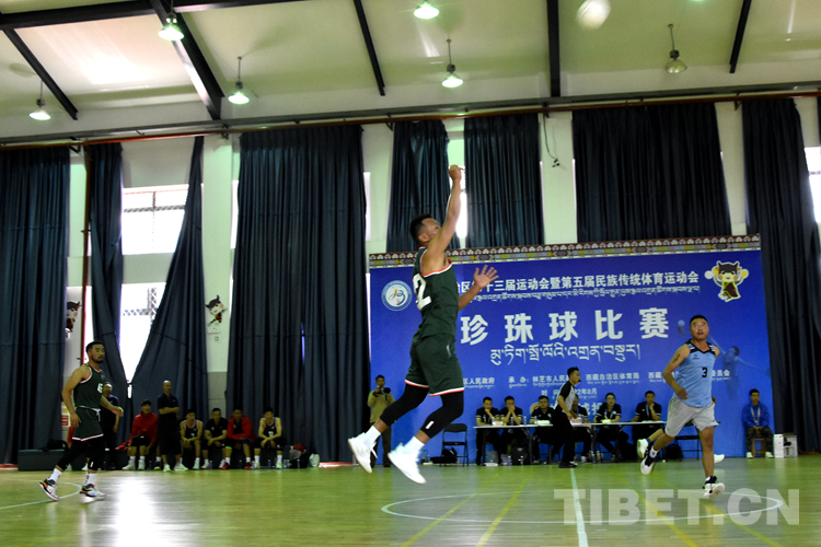 圖為在林芝主賽場(chǎng)進(jìn)行的西藏自治區(qū)第五屆民族傳統(tǒng)體育運(yùn)動(dòng)會(huì)珍珠球比賽現(xiàn)場(chǎng) 攝影:拉姆