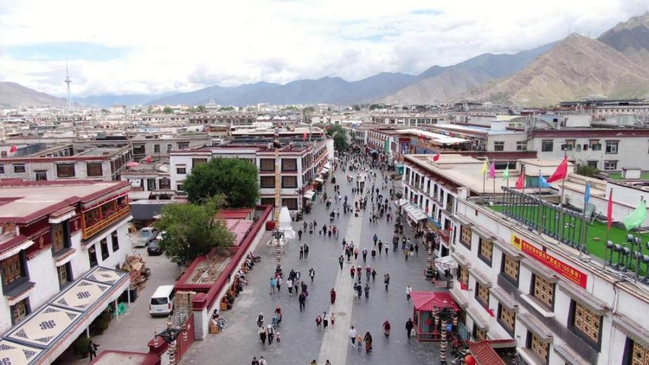 圖為俯瞰拉薩八廓街 圖片來(lái)源:中央廣播電視總臺(tái)央視新聞官方賬號(hào) 攝影:李旭