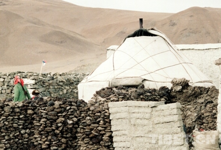 這是從新疆回遷到雙湖辦事處榮瑪鄉(xiāng)(現(xiàn)尼瑪縣榮瑪鄉(xiāng))的一戶牧民蒙古包(唐召明1990年1月攝)