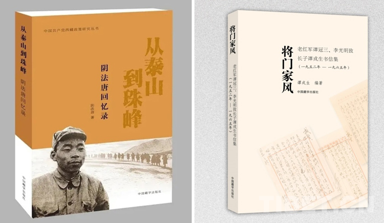 圖為西藏自治區(qū)黨委原書記陰法唐的回憶錄《從泰山到珠峰》和開國中將譚冠三寫給長子譚戎生的家書集《將門家風》書影