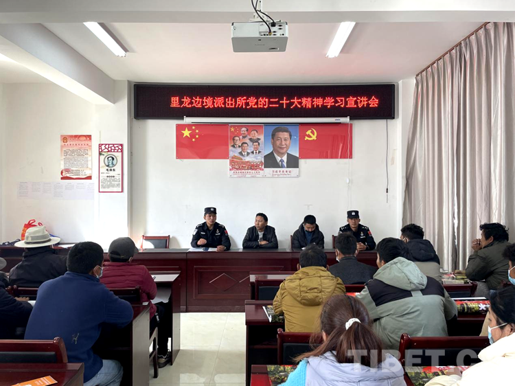 在林芝邊境管理支隊(duì)里龍邊境派出所玉松村的黨群活動(dòng)中心,民警們宣講著黨的二十大報(bào)告精神熱點(diǎn),普布老人和群眾們聽著黨的“好聲音”臉上露出了燦爛的笑容。