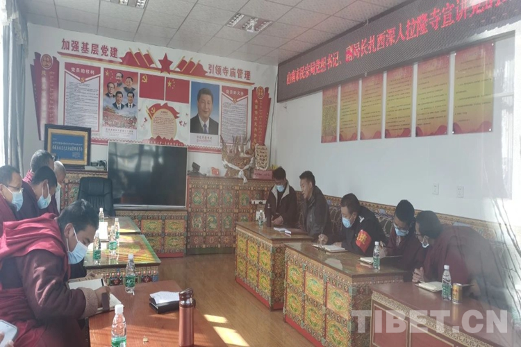 圖為洛扎縣拉隆寺僧人和駐寺干部深入學(xué)習(xí)黨的二十大精神,僧人們表示,要持續(xù)弘揚愛國愛教優(yōu)良傳統(tǒng),自覺踐行“四條標準”,不斷增進“五個認同”,牢固樹立“三個意識”,堅持藏傳佛教中國化方向,積極推動宗教與社會主義社會相適應(yīng),堅定不移聽黨話、感黨恩、跟黨走。