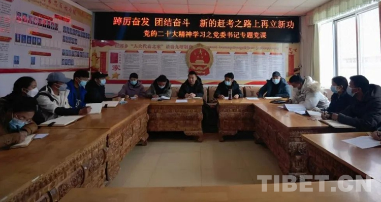 圖為洛扎縣拉郊鄉(xiāng)開展題為“踔厲奮發(fā)團結(jié)奮斗,新的趕考之路上再立新功”的黨的二十大精神學(xué)習(xí)之黨委書記講黨課活動。