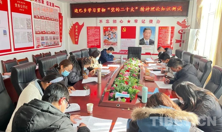 圖為洛扎縣邊巴鄉(xiāng)黨委理論學(xué)習(xí)中心組學(xué)習(xí)貫徹黨的二十大精神并進行黨的二十大精神理論知識測試。(中國西藏網(wǎng) 記者/賈華加 圖片來源:洛扎縣宣傳部)
