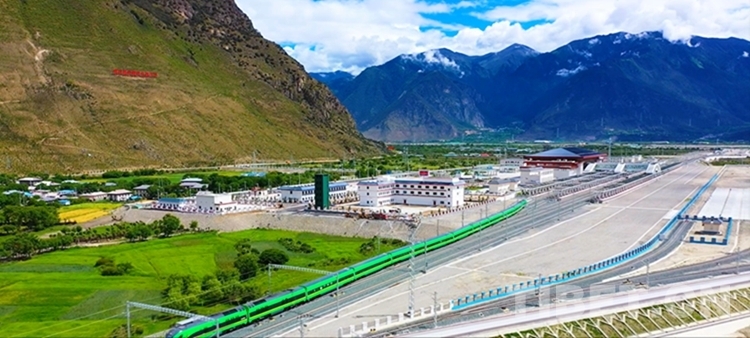 圖為拉林鐵路復(fù)興號動車穿梭而過