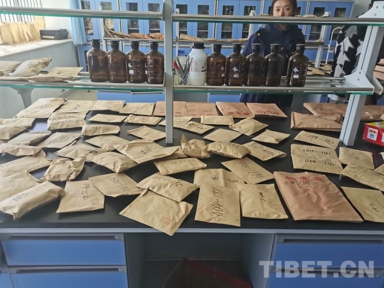 圖為西藏自治區(qū)農(nóng)牧科學(xué)院草業(yè)科學(xué)研究所科技人員將采集到的牧草種質(zhì)資源在實驗室內(nèi)預(yù)處理