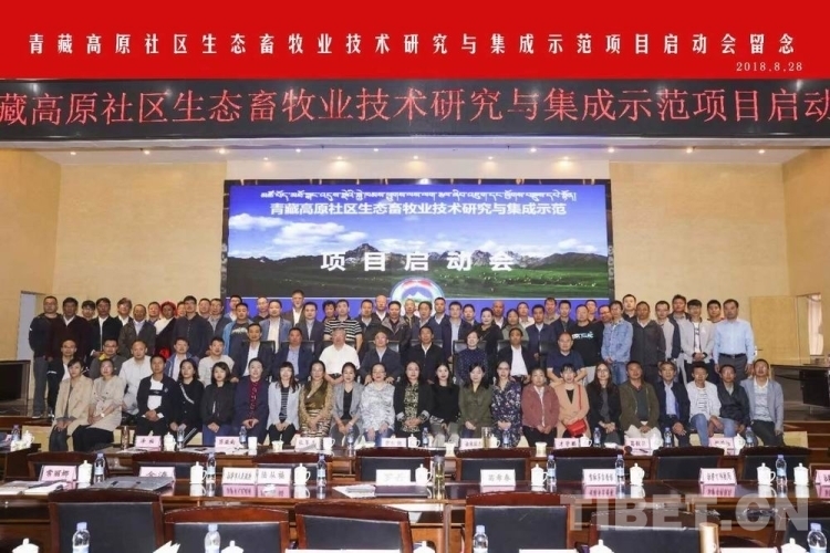 圖為2018年8月“青藏高原社區(qū)生態(tài)畜牧業(yè)技術(shù)研究與集成示范”項目啟動會的會議合影。該項目是西藏科研團(tuán)隊承擔(dān)的科技部重點研發(fā)項目