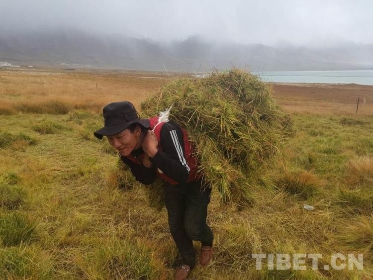 圖為西藏自治區(qū)那曲牧民在天然草地刈割打草