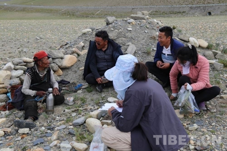 圖為西藏自治區(qū)農(nóng)牧科學(xué)院草業(yè)科學(xué)研究所科技人員在咨詢調(diào)研西藏野生牧草與傳統(tǒng)文化融合情況