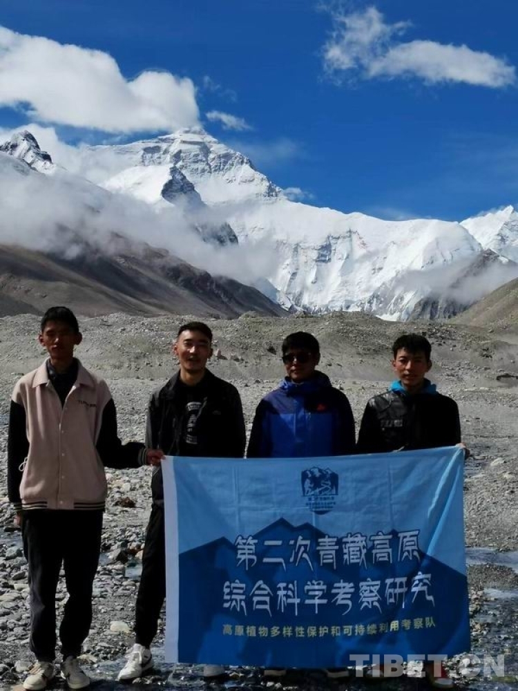 圖為西藏自治區(qū)農(nóng)牧科學(xué)院草業(yè)科學(xué)研究所科技人員在珠峰極高海拔區(qū)域開展第二次青藏科考任務(wù)