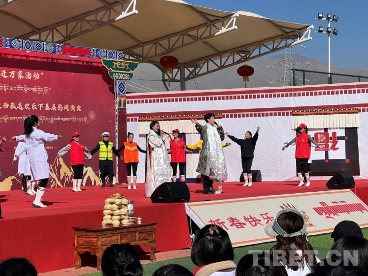 中國西藏網(wǎng)訊 正值早春二月,藏歷水兔新年即將到來。2月19日上午11:30,由中國文學(xué)藝術(shù)界聯(lián)合會、中國電影家協(xié)會、西藏自治區(qū)黨委宣傳部聯(lián)合主辦的“我們的中國夢——文化進(jìn)萬家”送歡樂下基層慰問演出活動在西藏自治區(qū)拉薩市堆龍德慶區(qū)濱河體育公園舉行?! ?/p>