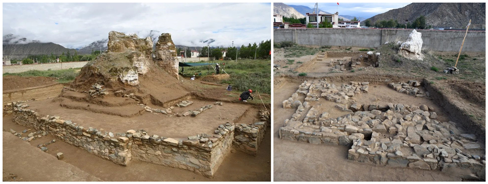 圖為西藏曲水溫江多遺址西南塔塔基(左)和東北塔塔基(右) 圖片來源:國家文物局供圖拼合