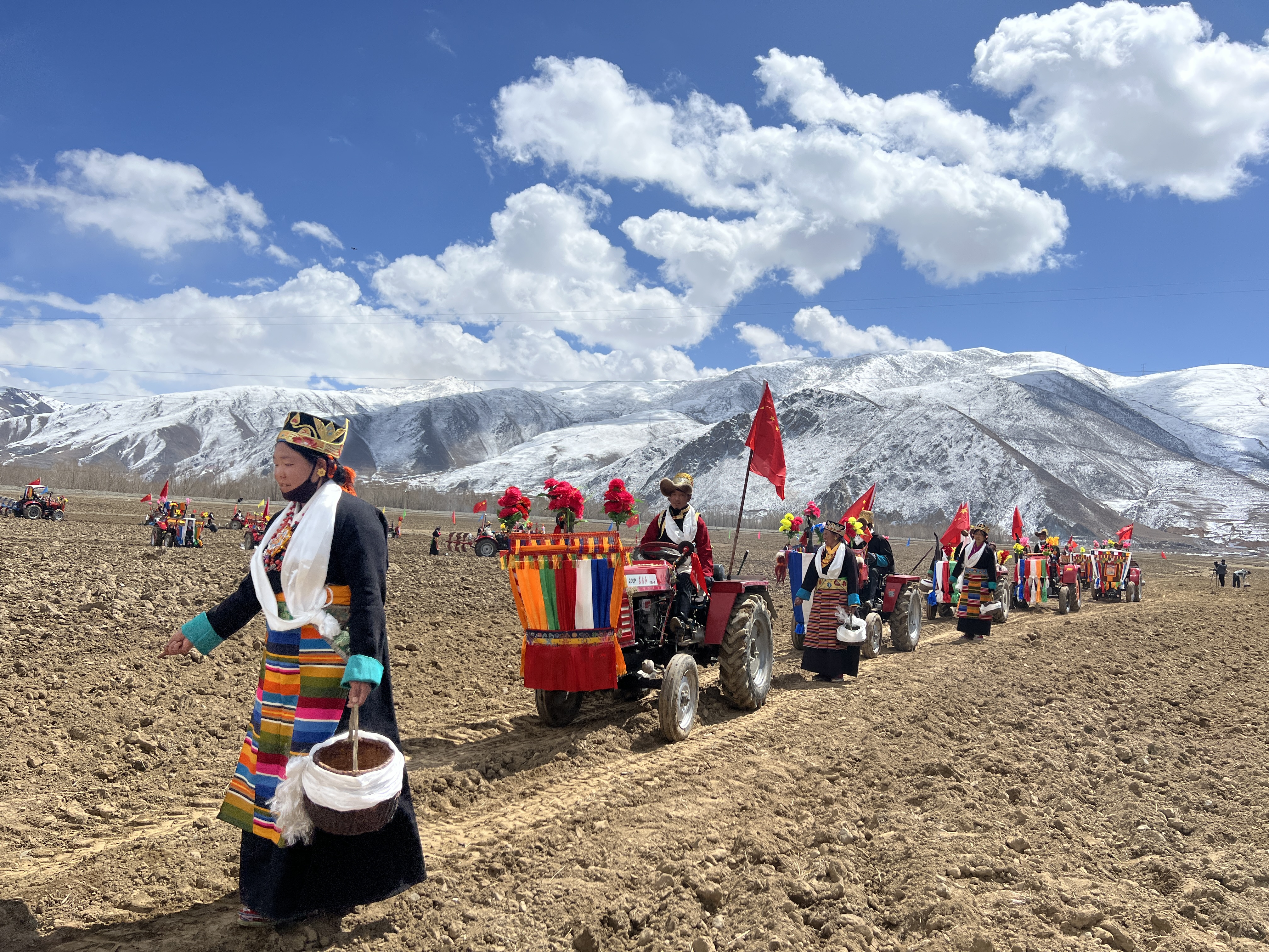 驚蟄過后,祖國各地,大江南北,陸續(xù)進(jìn)入春耕階段,人們帶著新一年的盼望在田壟上開始新一年的耕耘。春耕,在西藏農(nóng)民的眼中,是一年之中最隆重的農(nóng)事活動(dòng)之一。換上嶄新的藏裝,帶上釀好的青稞酒,手捧自家的“切瑪”(象征五谷豐登),全村人聚在田間舉行春耕前盛大隆重的開耕儀式。唱起“諧青”祈愿歌,伴隨轟隆隆的農(nóng)機(jī)聲音,抒發(fā)著春耕帶來的無限喜悅和希望。