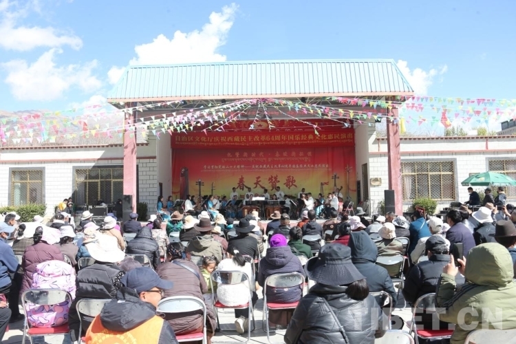 中國西藏網(wǎng)訊 近日,由西藏自治區(qū)文化廳主辦,西藏自治區(qū)歌舞團、藏劇團承辦的慶祝西藏民主改革64周年——國樂經(jīng)典文化惠民演出《春天贊歌》在拉薩拉開序幕,并將于近期在拉薩、日喀則等地演出近20場。