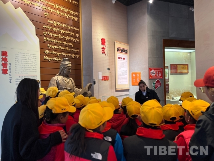 走進(jìn)“藏地智慧”,學(xué)生們一眼認(rèn)出藏文創(chuàng)始人吞彌·桑布扎,大家異口同聲回答講解員的問(wèn)題說(shuō):“這是吞彌·桑布扎?!钡玫街v解員的肯定、并向他們講述背后的相關(guān)歷史后,學(xué)生們聽(tīng)得很入迷,也更有信心面對(duì)接下來(lái)的問(wèn)題。藏文的信息化使得這一古老文字煥發(fā)著全新而旺盛的生命力,在這里學(xué)生們欣賞藏文在智能手機(jī)、電腦、多功能點(diǎn)讀機(jī)等智能電子設(shè)備內(nèi)“走動(dòng)”、傳統(tǒng)農(nóng)牧業(yè)的模擬場(chǎng)景和現(xiàn)代化的機(jī)械設(shè)備圖、藏醫(yī)藥材、藏香藏紙制造和制鹽過(guò)程等獨(dú)具特色的藏族傳統(tǒng)手工藝,也能很好的回答講解員提出的問(wèn)題,現(xiàn)場(chǎng)互動(dòng)氣氛熱烈。“這種活動(dòng)我們學(xué)校不會(huì)常有,當(dāng)孩子們聽(tīng)到要去拉薩時(shí)像是要過(guò)年那樣高興,一路上問(wèn)這問(wèn)那地充滿好奇?!倍喟奏l(xiāng)小學(xué)的帶隊(duì)老師羅珍介紹:“這次參加活動(dòng)的這些學(xué)生都是三、四、五年級(jí)的學(xué)生,個(gè)個(gè)品學(xué)兼優(yōu)。”
