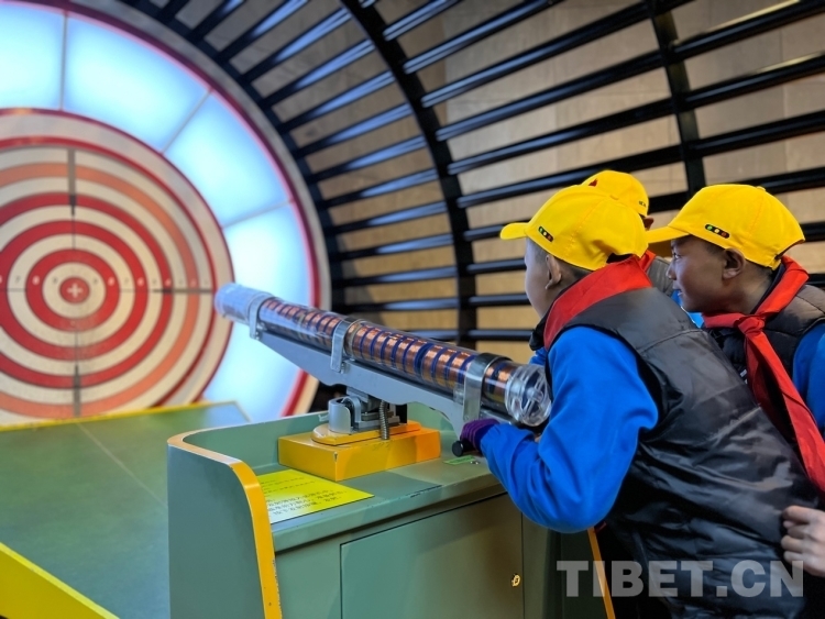 在講解員的帶領(lǐng)下學(xué)生們來(lái)到科技館,這里包括藏地智慧、科技樂(lè)園、科技前沿、體驗(yàn)世界屋脊等4個(gè)主題展區(qū),主要展示古老的西藏科技智慧、人類取得的科技成就及基礎(chǔ)科學(xué)知識(shí)、科技促進(jìn)人類的發(fā)展及西藏的開(kāi)發(fā)建設(shè)、西藏高原生存環(huán)境的內(nèi)容。