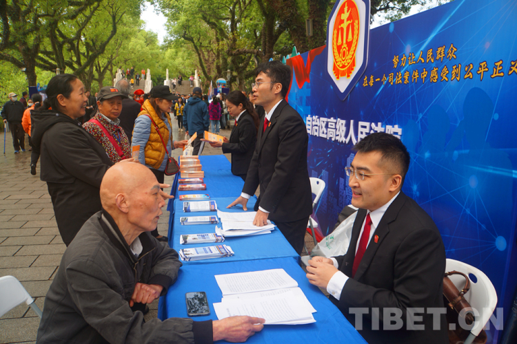 圖為廣西壯族自治區(qū)高級(jí)人民法院工作人員在網(wǎng)絡(luò)法治宣傳一條街開(kāi)展普法活動(dòng) 攝影:周晶