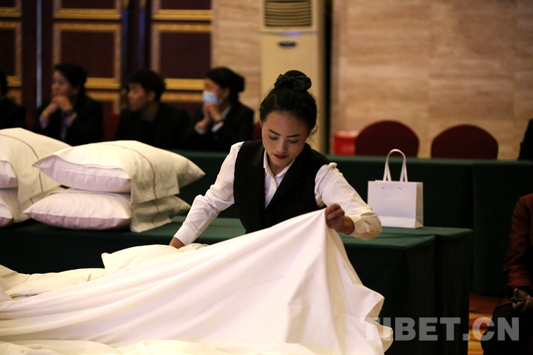 中國西藏網(wǎng)訊 5月11日,由西藏自治區(qū)旅游發(fā)展廳、西藏自治區(qū)總工會、共青團西藏自治區(qū)委員會、西藏自治區(qū)婦女聯(lián)合會主辦,西藏旅游飯店業(yè)協(xié)會承辦的2023年西藏自治區(qū)星級飯店從業(yè)人員服務(wù)技能競賽在拉薩開賽。45名選手圍繞中餐宴會擺臺、西餐宴會擺臺、中式鋪床及夜床服務(wù)、前廳服務(wù)4個項目同臺競技。