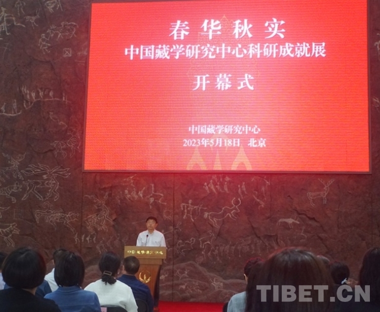 圖為陳宗榮在“春華秋實——中國藏學(xué)研究中心科研成就展”開幕式現(xiàn)場致辭 攝影:周晶
