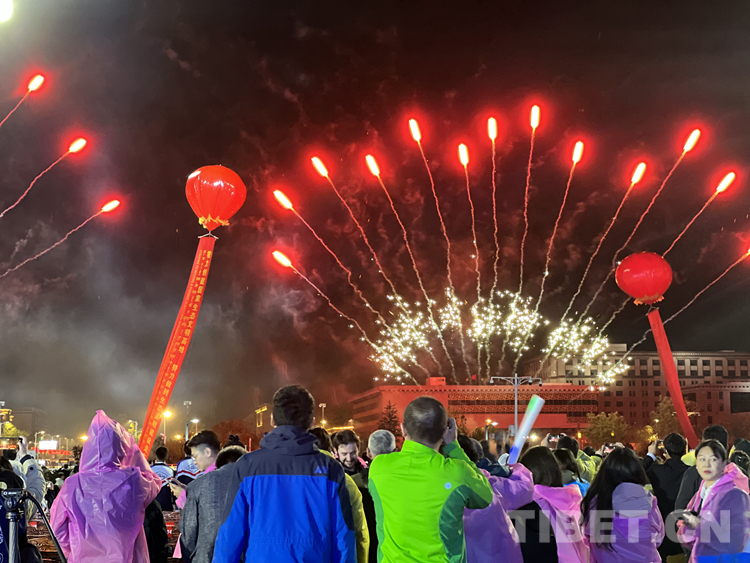 圖為煙花秀閃亮藏博會開幕式上空 攝影:德吉卓瑪