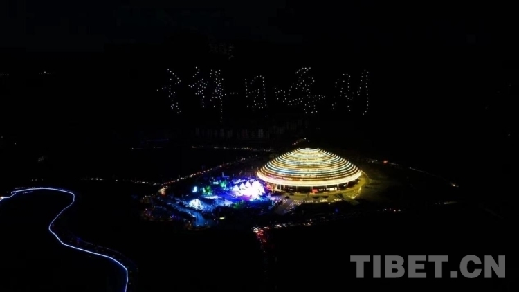 21時30分許,由300架無人機(jī)組成的暖場表演在園區(qū)上空精彩呈現(xiàn),組成”珠峰故里、吉祥日喀則,歡迎您!”等陣型。匠心獨(dú)運(yùn)的創(chuàng)意設(shè)計,流光溢彩的聲光電效果,以恢宏氣勢和華麗造型,展示日喀則的開放包容。