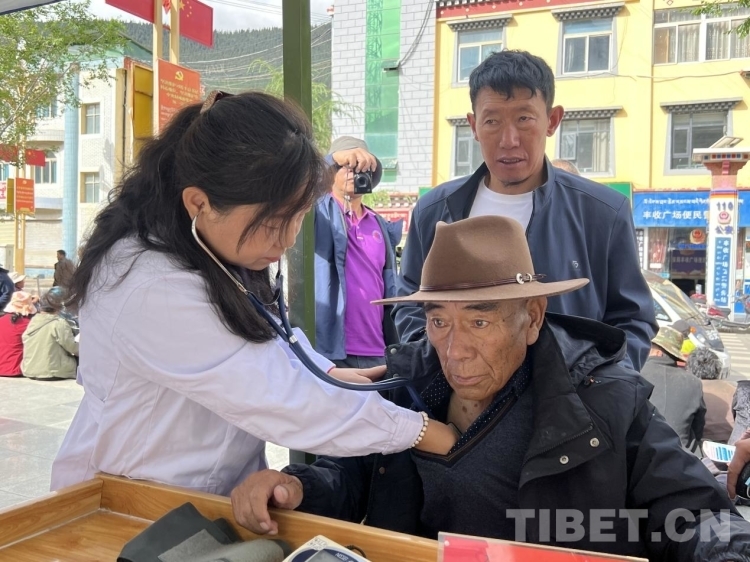 圖為孜托鎮(zhèn)群眾來到縣豐收廣場(chǎng)就醫(yī) 攝影:德吉卓瑪