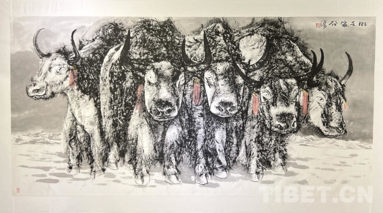 汪仕民介紹,此次《牦牛志·水墨西藏》個人作品展上,除了水墨作品外,還特地安排了一部分去年疫情封控期間的牦牛畫作和系列風(fēng)景作品配合這次的展出,希望特殊時期的作品與這次牦牛水墨系列作品能給拉薩市民帶來一份愜意,和饕鬄般美的享受盛宴。“我也希望通過這次兩百余幅畫作的展出,陶冶豐富拉薩的情操與文化生活,也為西藏文化藝術(shù)發(fā)展盡一份綿力?!蓖羰嗣裾f。
