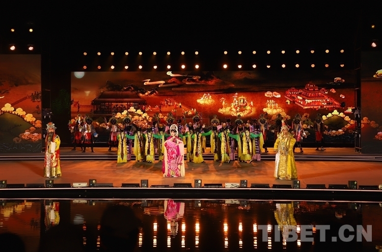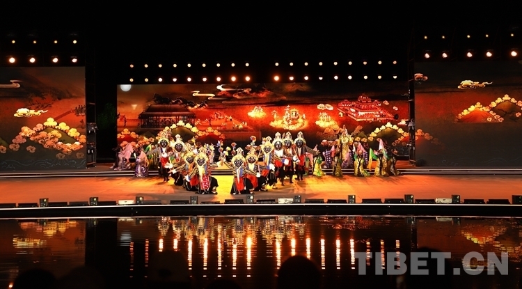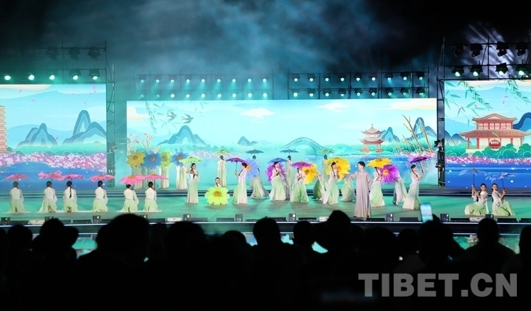 當(dāng)晚開幕式文藝演出共分為序《雪頓新韻》、上篇《相約雪頓》、下篇《心約拉薩》和尾聲《百年雪頓》四部分,整場(chǎng)文藝演出融合歌曲、舞蹈、藏戲、京劇、昆曲、街舞等元素,并以半實(shí)景的舞臺(tái)藝術(shù)形式上演《百年雪頓》等節(jié)目,線上線下呈現(xiàn)了一臺(tái)傳統(tǒng)與現(xiàn)代交相輝映、傳承與創(chuàng)新和諧相融、歷史與未來(lái)一脈相承的文藝盛宴。