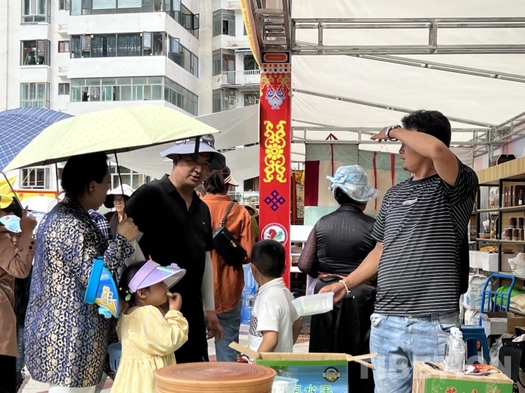 牦牛肉、酥油、酸奶、奶渣等畜牧業(yè)產品;青稞、蕎麥、糌粑、核桃油等農產品;唐卡、服飾、藏醫(yī)藥、木碗等非遺產品等等,各種各樣的特色產品讓人目不暇接,游客們流連于各個展銷點選購心儀的產品,現(xiàn)場已然一幅熱鬧的景象。