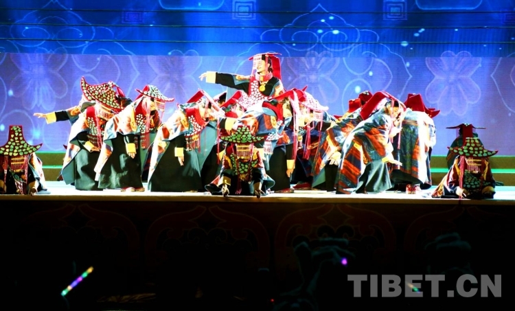隨后盛大的開幕式文藝演出如期而至。演出共分為《悠遠古韻》《詩意微芒》《如炬經(jīng)典》《輝煌盛世》四個篇章?!队七h古韻》篇章為大型情景表演,結(jié)合古格壁畫為開場表演,展現(xiàn)出阿里人民群眾的精神面貌和獨特的阿里神韻?!对娨馕⒚ⅰ穮R集阿里地區(qū)諸多極具代表性的國家級非物質(zhì)文化遺產(chǎn)節(jié)目,展現(xiàn)阿里地區(qū)悠久燦爛的古代文明遺存?!度缇娼?jīng)典》篇章通過不同舞蹈,展現(xiàn)阿里獨具特色的民間歌舞文化。《盛世弦歌》則展現(xiàn)了阿里地區(qū)以熱情昂揚的姿態(tài)在全力以赴推動建設雪域高原“西部明珠”中取得的一系列可喜的成績。