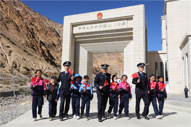 圖為參加活動(dòng)的民警與學(xué)生在中尼(中國與尼泊爾)9號(hào)界樁,開展“傳承紅色基因 弘揚(yáng)烈士精神”主題宣傳教育活動(dòng)
