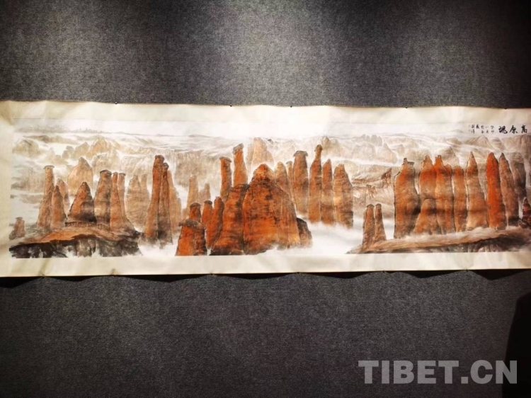 中國西藏網(wǎng)訊 10月29日,“中華民族共同體意識視域下西藏系列劉洋國畫作品展”在拉薩開展。此次畫展為西藏自治區(qū)2023年度文藝創(chuàng)作扶持項目,以“山川藏痕”為主題,由西藏自然科學(xué)博物館,西藏宮桑曲印文化科技有限公司承辦。此次展覽也是西藏藝術(shù)家以中國畫筆法展示西藏山水自然風(fēng)光等題材的畫展。