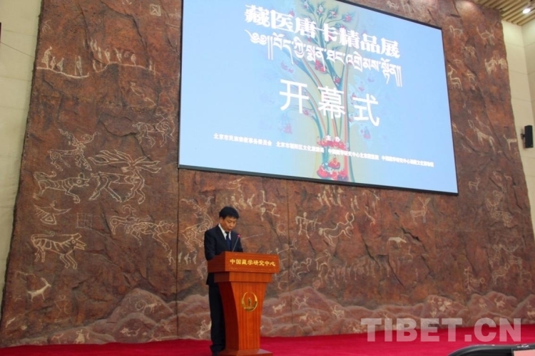 中國藏學(xué)研究中心北京藏醫(yī)院院長仲格嘉在開幕式致辭中介紹,起源和根植于中華民族的藏醫(yī)藥,是我國中醫(yī)藥學(xué)寶庫中的一顆璀璨明珠。藏醫(yī)藥迄今已有3800多年的發(fā)展歷史,在藏醫(yī)學(xué)史上形成了別出心裁的藏醫(yī)唐卡。藏醫(yī)唐卡以浩瀚畫卷,形象生動、系統(tǒng)地描繪了藏醫(yī)藥學(xué)的體系框架、基礎(chǔ)理論、臨床實(shí)踐技法,以及藏醫(yī)史、醫(yī)德醫(yī)風(fēng)、養(yǎng)生保健等內(nèi)容。除了藏醫(yī)教學(xué)的實(shí)用價值外,藏醫(yī)唐卡還有很高的民族學(xué)、歷史學(xué)、宗教學(xué)及美學(xué)價值,其卷幅之多、內(nèi)容之廣博、構(gòu)思之巧妙、畫工之精湛,堪稱學(xué)習(xí)藏醫(yī)藥學(xué)的百科全書。