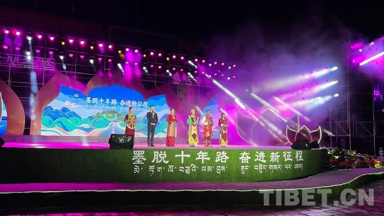 11月4日,墨脫通車十周年系列活動之“墨脫十年路 奮進(jìn)新征程”文藝演出在墨脫縣好日子蓮花廣場舉行。來自墨脫縣各行各業(yè)的代表、當(dāng)?shù)鼐用褚约皝碜匀珖鞯氐挠慰妄R聚這里,共同為墨脫通車十周年這一歷史性時刻慶祝。