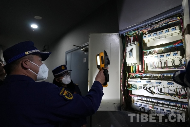 圖為消防監(jiān)督員正在對配電柜進行溫度測量