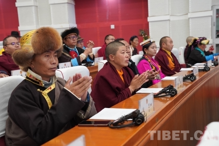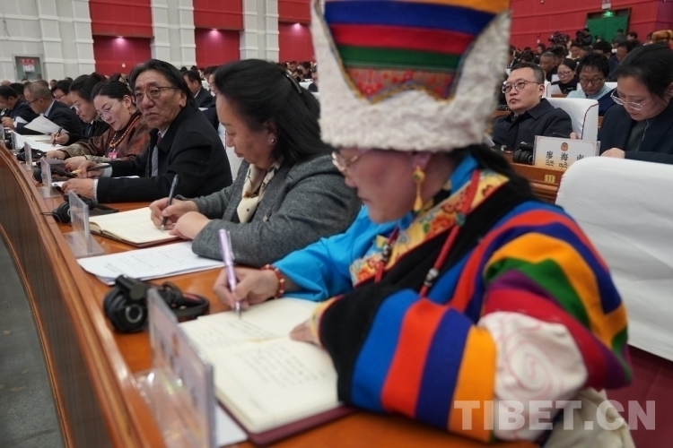 圖為開幕會現(xiàn)場委員在認(rèn)真聽取各項報告 攝影:次旦拉姆