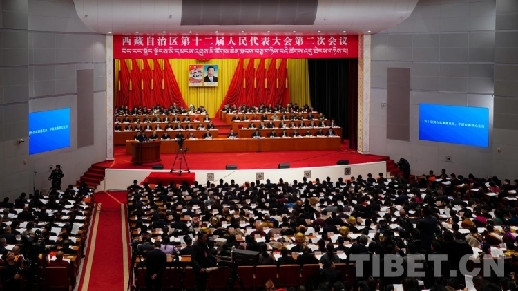 圖為西藏自治區(qū)第十二屆人民代表大會(huì)第二次會(huì)議開(kāi)幕會(huì)現(xiàn)場(chǎng) 攝影:趙振宇