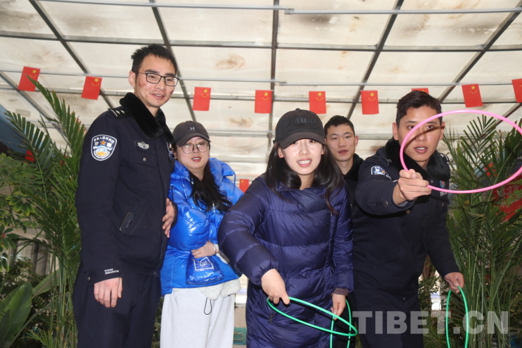 圖為來隊家屬一起在陽光房玩套圈游戲 攝影:鄭鵬飛